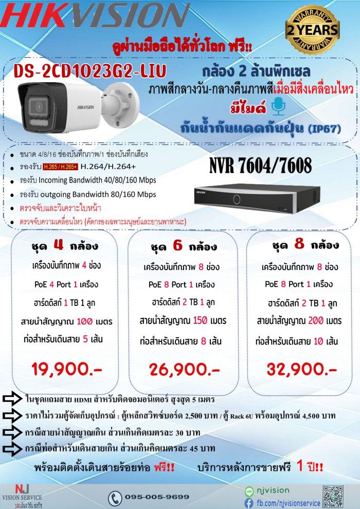 ชุดกล้อง Hikvision 2ล้านพิกเซล ภาพสีกลางวัน-กลางคืนภาพสี(เมื่อมีสิ่งเคลื่อนไหว) คุยโต้ตอบได้ มีไมค์บันทึกเสียง