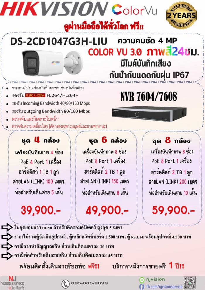 ชุดกล้อง Hikvision 2ล้านพิกเซล ภาพสีตลอด 24 ชั่วโมง มีไมค์บันทึกเสียง