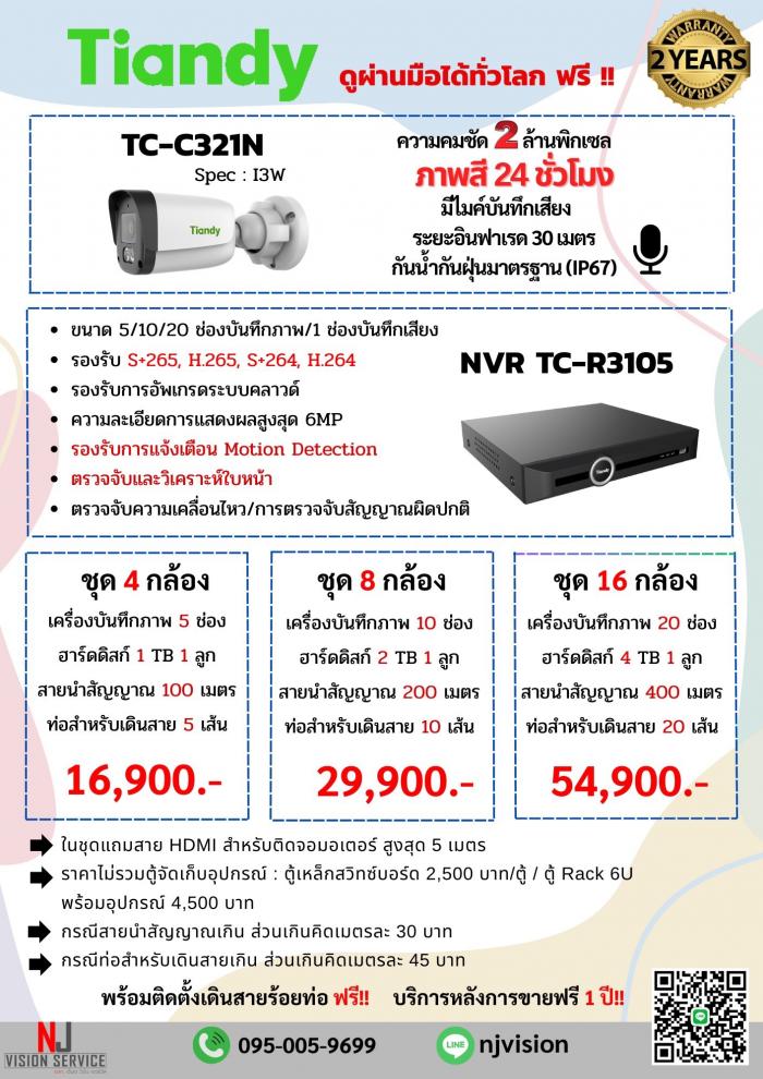 ชุดกล้อง Tiandy IP CAMERA 2ล้านพิกเซล ภาพสี 24 ชั่วโมง (มีไมค์บันทึกเสียง)