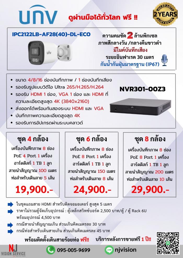 ชุดกล้อง UNV IP CAMERA 2ล้านพิกเซล ภาพสีกลางวัน-กลางคืนขาวดำ (มีไมค์บันทึกเสียง)