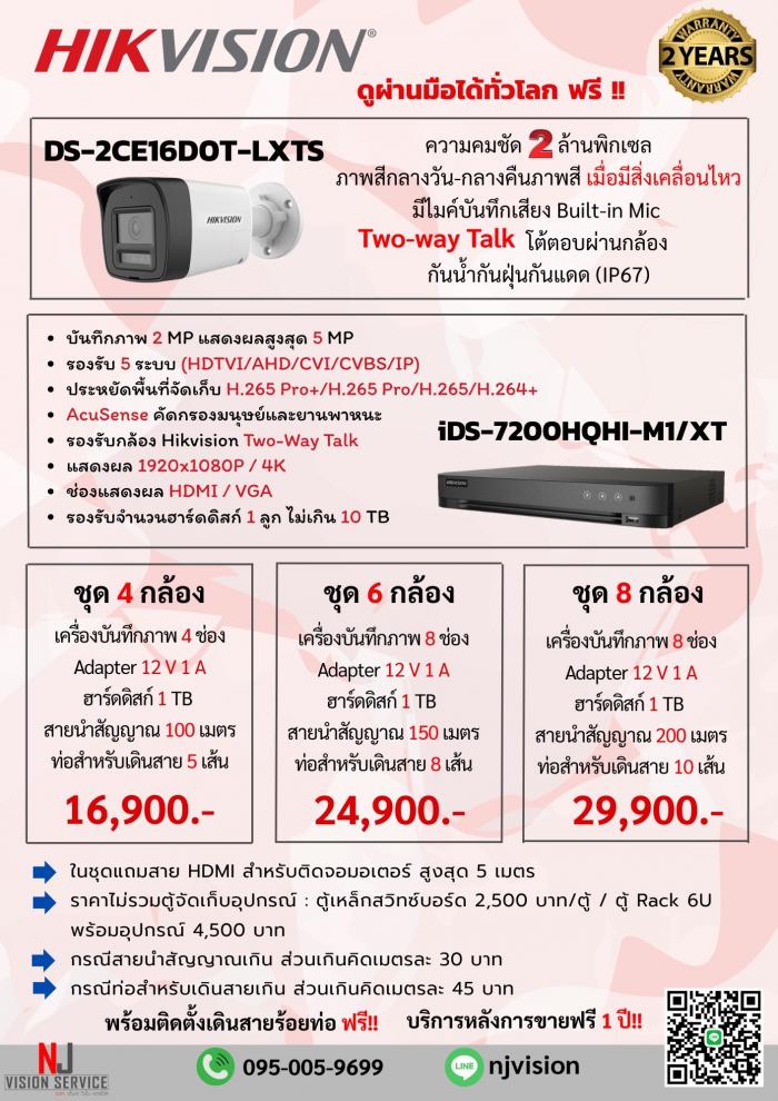 ชุดกล้อง Hikvision 2ล้านพิกเซล ภาพสีกลางวัน-กลางคืนภาพสี(เมื่อมีสิ่งเคลื่อนไหว) คุยโต้ตอบได้ มีไมค์บันทึกเสียง