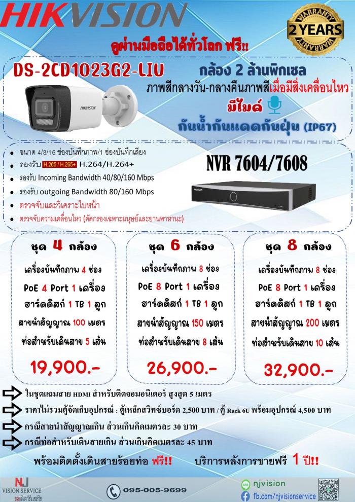 ชุดกล้อง Hikvision 2ล้านพิกเซล ภาพสีกลางวัน-กลางคืนภาพสี(เมื่อมีสิ่งเคลื่อนไหว) คุยโต้ตอบได้ มีไมค์บันทึกเสียง