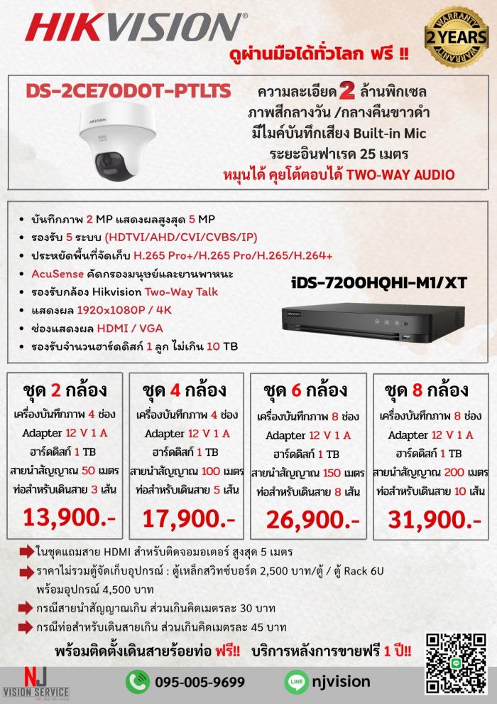 ชุดกล้อง Hikvision 2ล้านพิกเซล ภาพสีตลอด 24 ชั่วโมง มีไมค์บันทึกเสียง