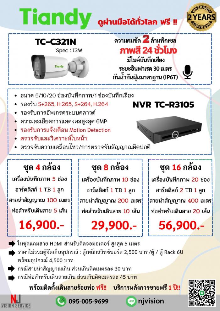 ชุดกล้อง Tiandy IP CAMERA 2ล้านพิกเซล ภาพสีกลางวัน-กลางคืนขาวดำ (มีไมค์บันทึกเสียง)