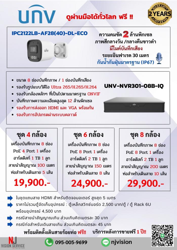 ชุดกล้อง UNV 2ล้านพิกเซล นกฮูก Color Hunter ภาพสี 24 ชั่วโมง (มีไมค์บันทึกเสียง)